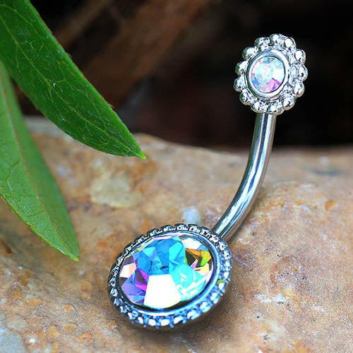 Stainless Steel Fancy Aurora Borealis Belly Button Navel Ring