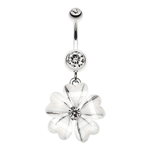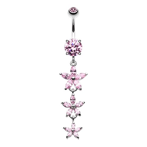 Shimmering Flower Cascade Cubic Zirconia Belly Button Ring