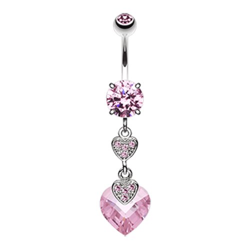 Shimmering Hearts Cubic Zirconia Belly Button Ring