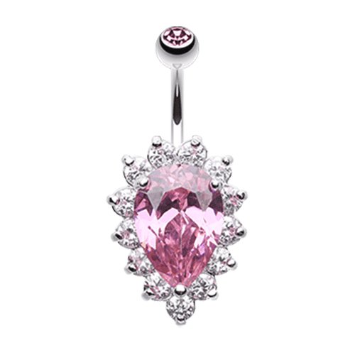 Sparkle Dazzle Droplet Multi Gem Cubic Zirconia Belly Button Ring