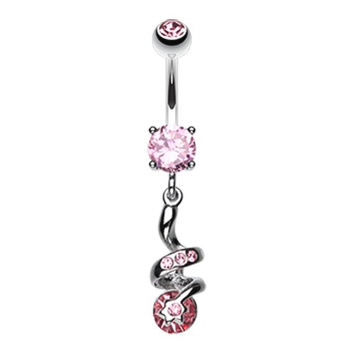 Sparkle Curl Heart Drop Cubic Zirconia Belly Button Ring