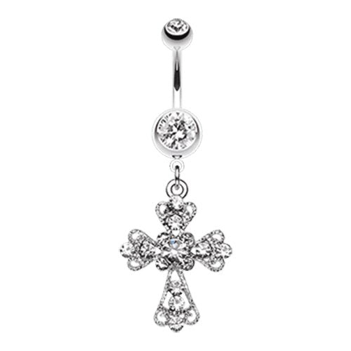 Shimmering Cross Patonce Belly Button Ring