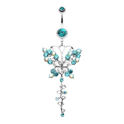 Opulent Butterfly Multi-Gem Belly Button Ring