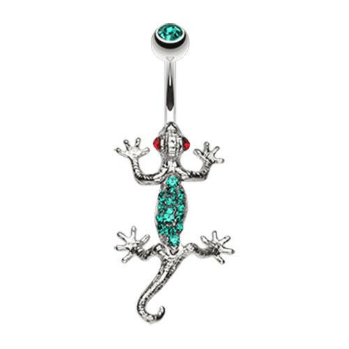 Moving Gecko Lizard Sparkle Belly Button Ring