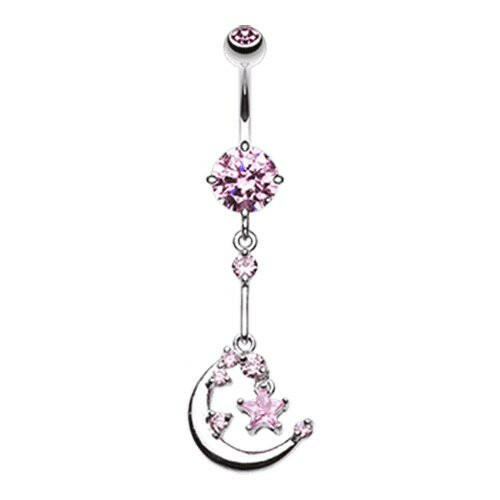 Opulant Moon and Star Cubic Zirconia Belly Button Ring