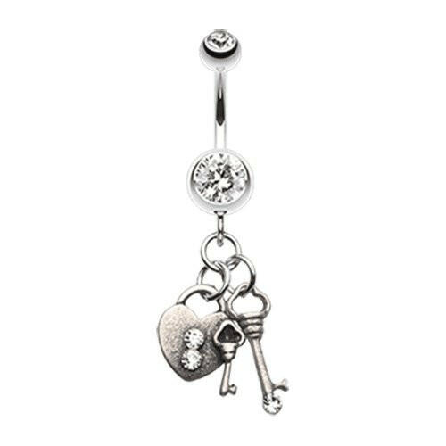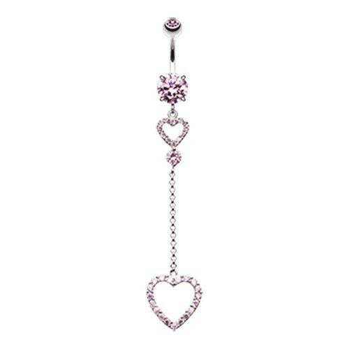 Luscious Double Hearts Cubic Zirconia Belly Button Ring
