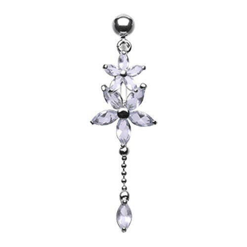 Luscious Flowers Droplets Cubic Zirconia Belly Button Ring