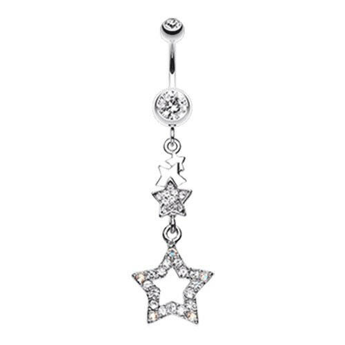 Illuminating Moonstone Filigree Hematite Moon Star Sparkle Belly Button Ring