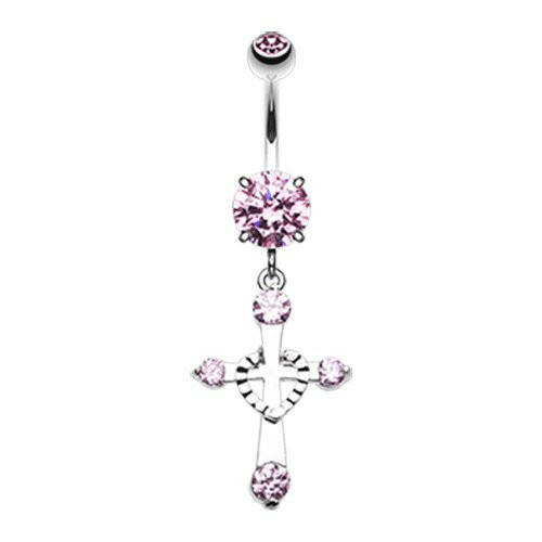 Heart in Cross Cubic Zirconia Belly Button Ring