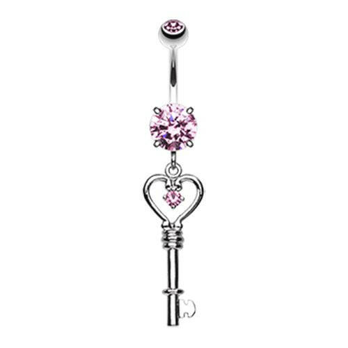 Heart Key Sparkle Cubic Zirconia Belly Button Ring