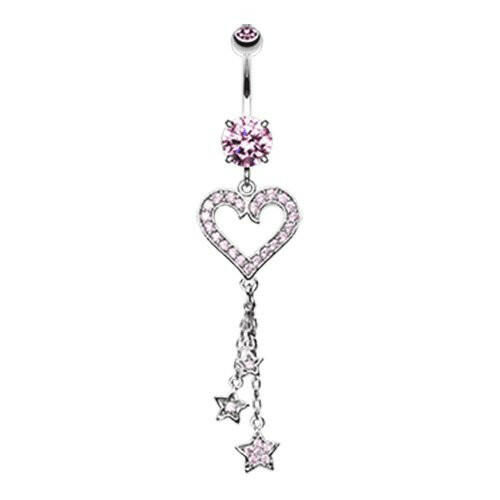 Heart Star Sparkles Cubic Zirconia Belly Button Ring