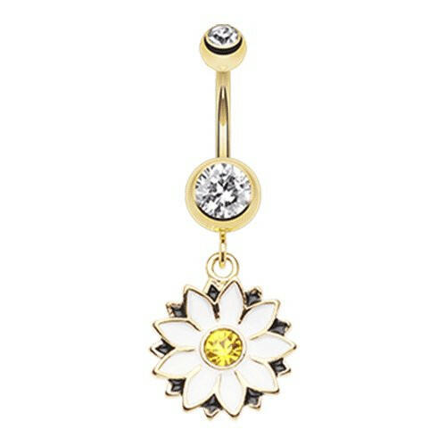 Golden Daisy Blossom Flower Belly Button Ring