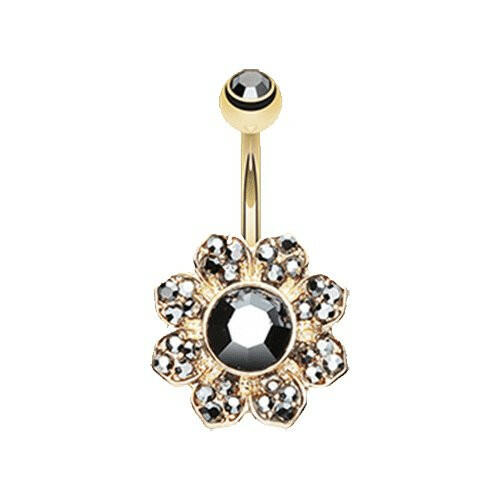 Golden Avens Flower Sparkle Belly Button Ring