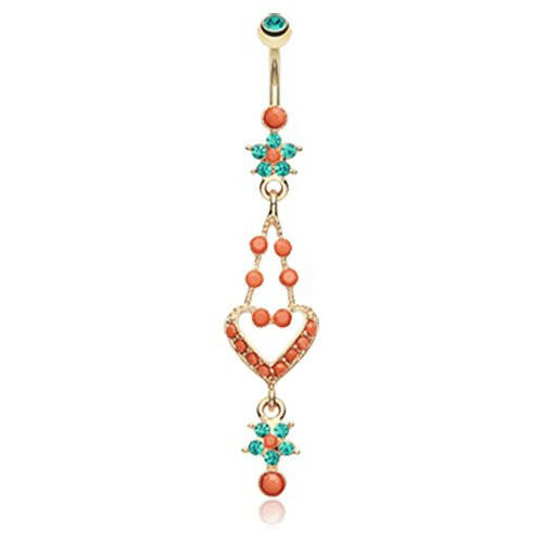 Golden Coral Flora Heart Belly Button Ring