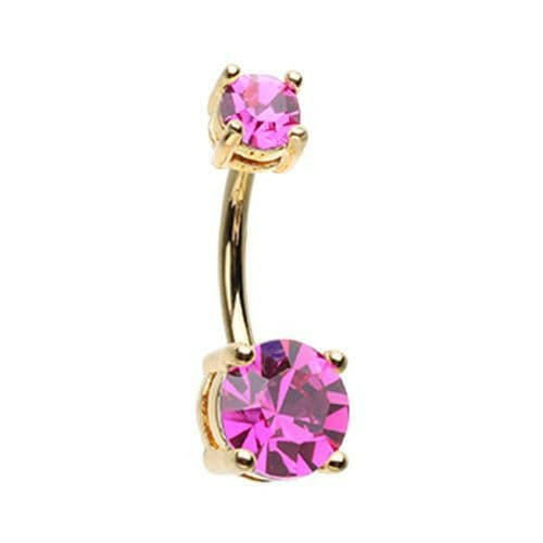 Golden Brilliant Sparkle Gem Prong Set Belly Button Ring