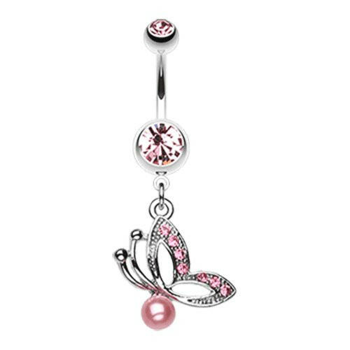 Elegant Jeweled Pearl Dangle Belly Button Ring