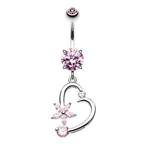 Extravagant Cubic Zirconia Heart Gem Belly Button Ring
