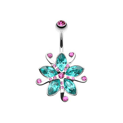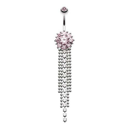 Exquisite Flower Bedazzled Cascading Cubic Zirconia Belly Button Ring