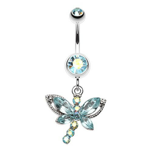 Golden Butterfly Dangle Drop Cubic Zirconia Belly Button Ring