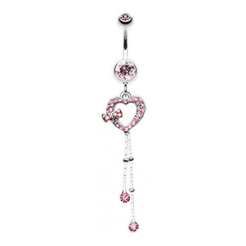 Dainty Bow-Tie Accented Heart Belly Button Ring