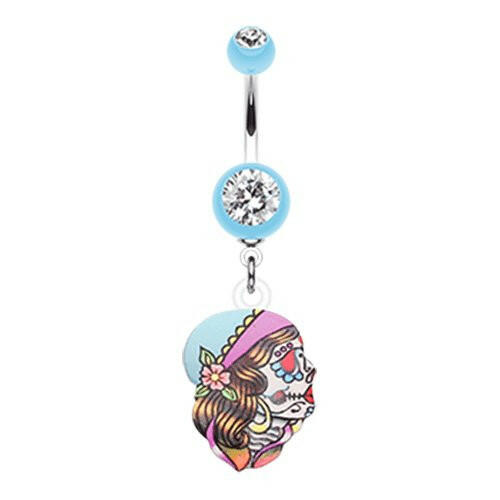 Dia De Los Muertos Retro Skull Belly Button Ring