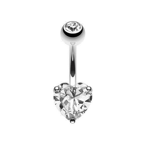 Classic Cubic Zirconia Heart Prong Sparkle Belly Button Ring