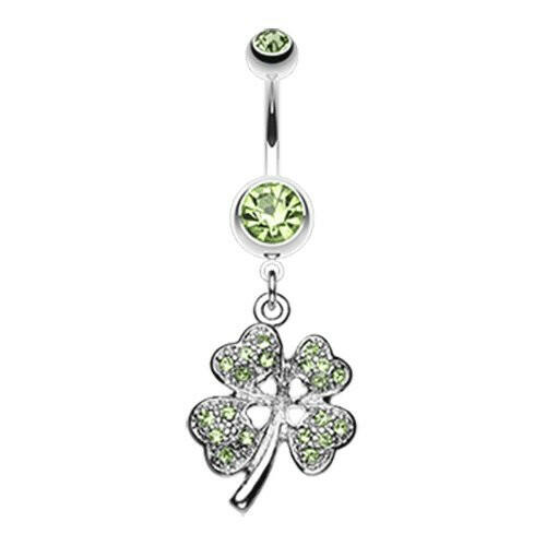 Classic Four Leaf Clover Sparkle Belly Button Ring