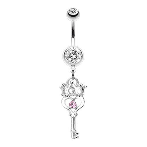 Crowned Heart Key Belly Button Ring