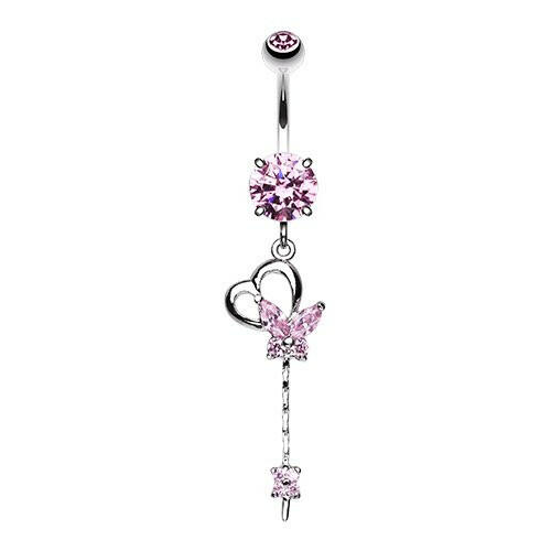 Cubic Zirconia Butterfly Heart Flower Sparkle Belly Button Ring