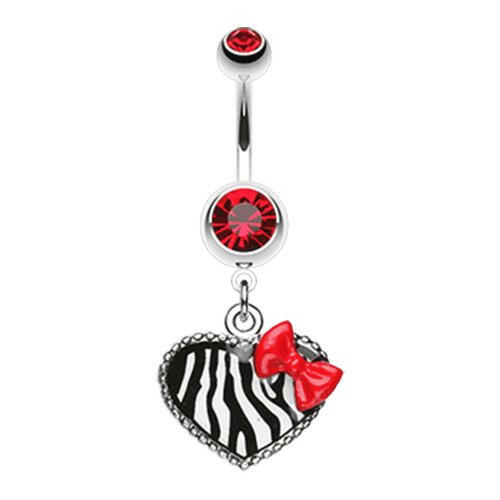 Cute Zebra Heart Red Bow Charm Belly Button Ring