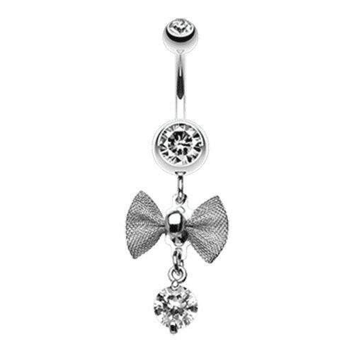 Dainty Mesh Bow Gem Sparkle Belly Button Ring