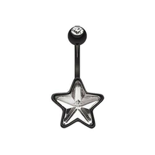 Black Yin Yang Sprinkle Dot Gem Prong Sparkle Belly Button Ring