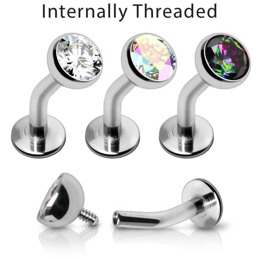 Internally Threaded Stainless Steel Press Fit CZ Floating Navel Ring