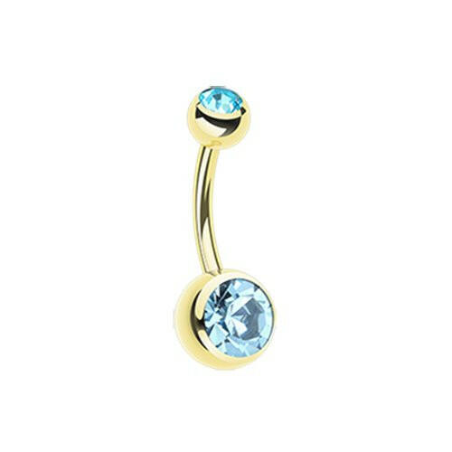 Gold PVD Double Gem Ball Steel Belly Button Ring