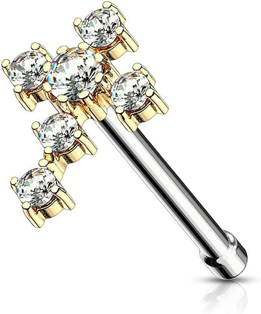 Surgical Steel CZ Cross Nose Bone Stud Rings