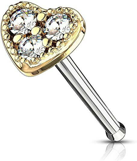 Surgical Steel CZ Heart Top Nose Bone Stud Rings