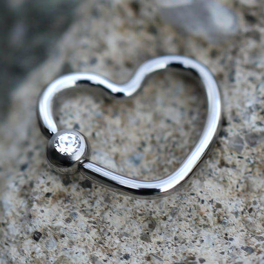 Stainless Steel Heart Captive Bead Ring with Clear CZ