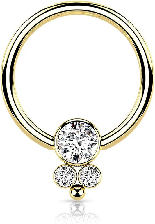 Surgical Steel 3 CZ Cluster Round Flat Ball Captive Bead Ring