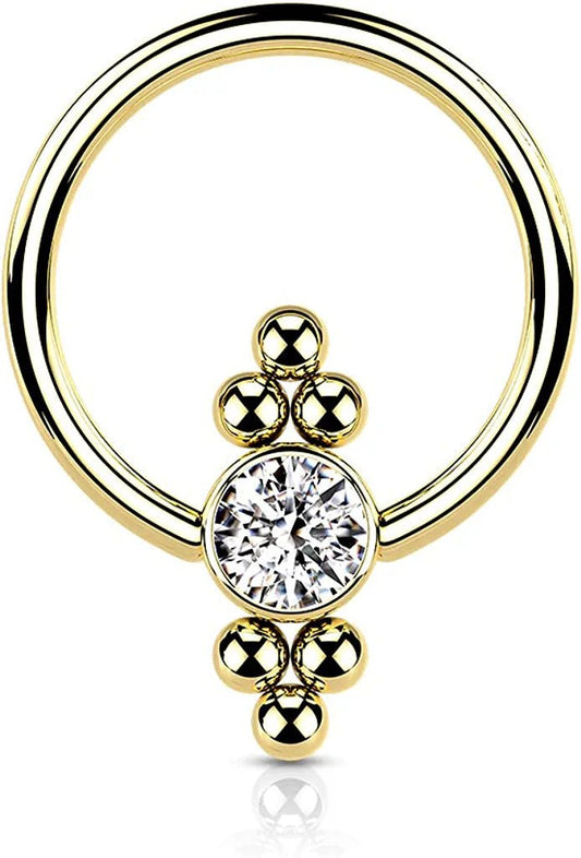 Surgical Steel CZ Flat Ball with Clusters On Each Side Captive Bead Ring