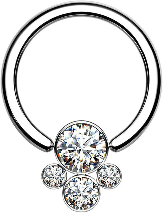 Titanium 4 Bezel CZ Cluster Captive Bead Rings