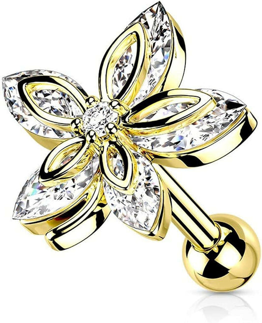 Surgical Steel 5 Marquise CZ Flower Top Cartilage Tragus Barbell Studs