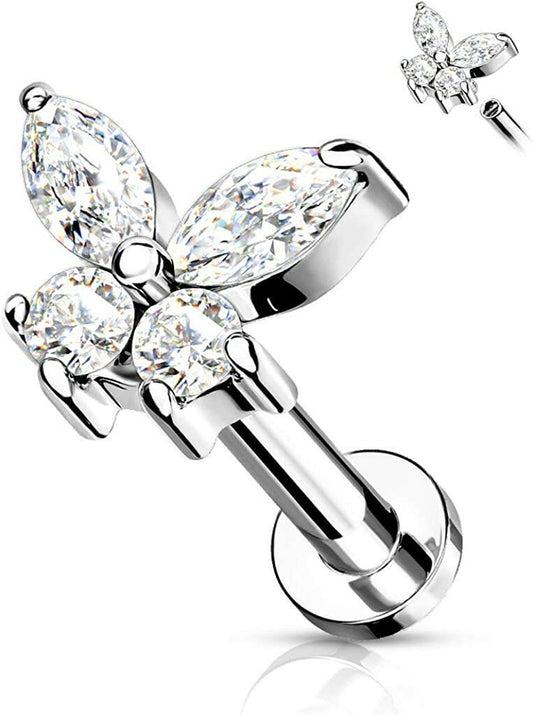 Surgical Steel Internally CZ Butterfly Top Flat Back Stud for Labret Monroe Cartilage