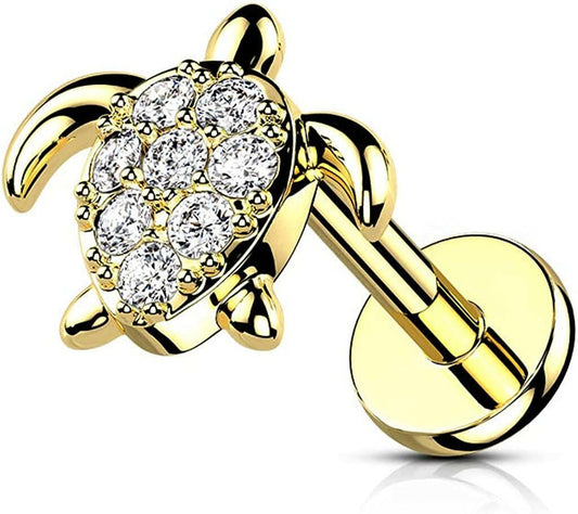 Surgical Steel Internally Threaded CZ Paved Turtle Flat Back Stud for Labret Monroe Cartilage