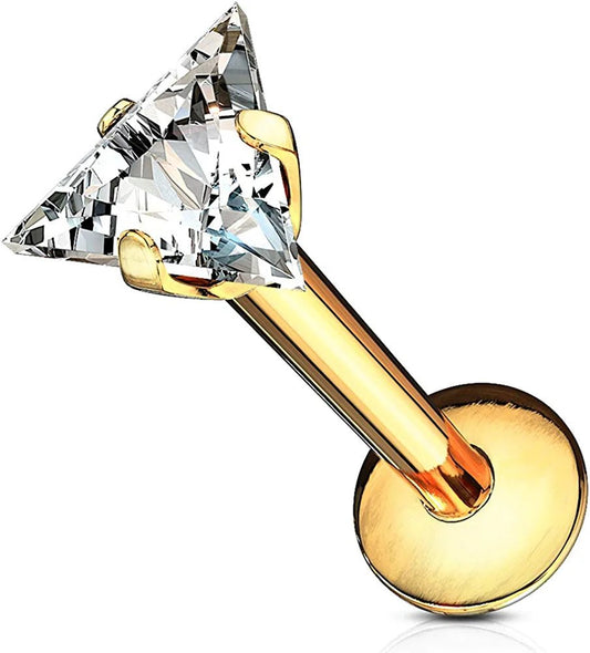 Surgical Steel Internally Threaded Triangle CZ Labret Monroe Cartilage Stud Rings