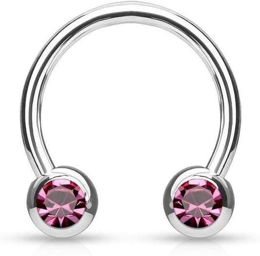 Front Facing Jewel Set Balls IP Over 316L Surgical Steel Circular/Horseshoes For Nipple, Septum and Ear Cartilage Piercings