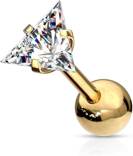 Prong Set Triangle CZ Surgical Steel Cartilage Tragus Barbell Studs