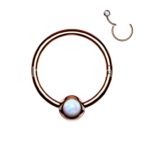 316L Surgical Steel Hinge Hoop Segment Rings with Opal Set Ball for Ear Cartilage, Nose Septum and More
