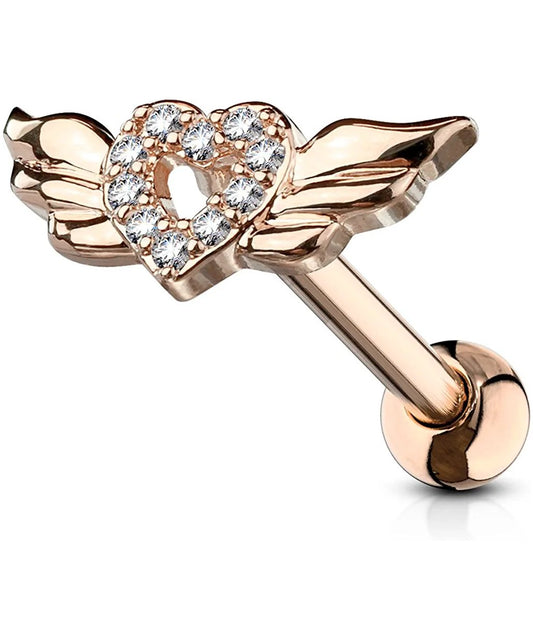Surgical Steel CZ Paved Heart with Wings Ear Cartilage Tragus Barbell Studs