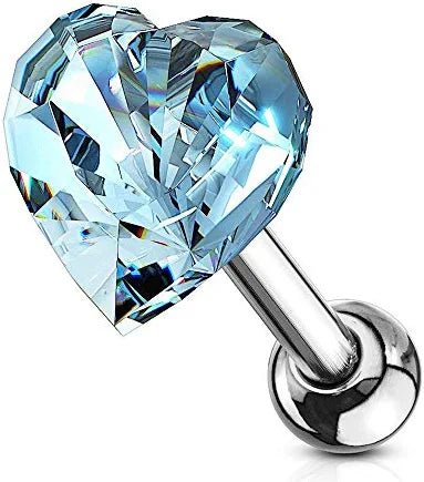 Surgical Steel Heart Crystal Top Ear Cartilage Tragus Barbell Studs
