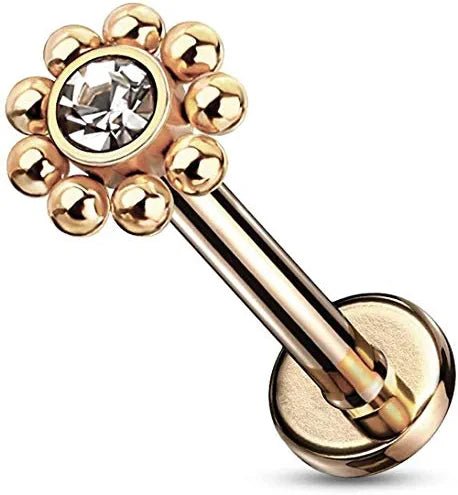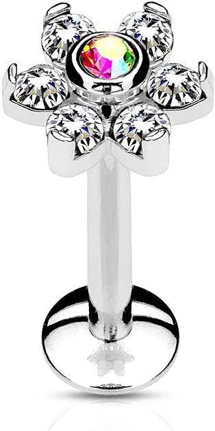 Surgical Steel Internally Threaded 6-Gem Flower Top Labret Monroe Cartilage Studs
